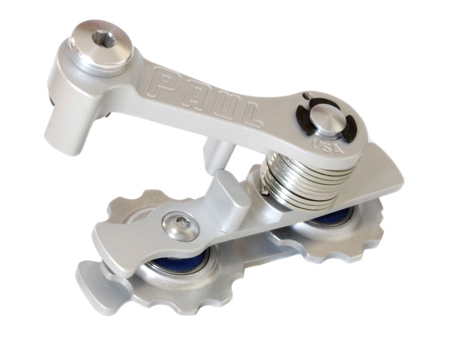 The Paul Components Melvin Chain Tensioner (silver) bolts to the frame where the rear derailleur would normally go and allows the use of a single speed rear wheel on bikes with vertical dropouts.