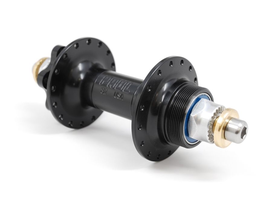 The Disk WORD hub has freewheel threading on the drive side for standard BMX style freewheels, and a 6 bolt ISO rotor mount. The flanges are canted towards the rim reducing spoke stress and the spoke holes are chamfered to reduce stress on the head and elbow of the spoke.